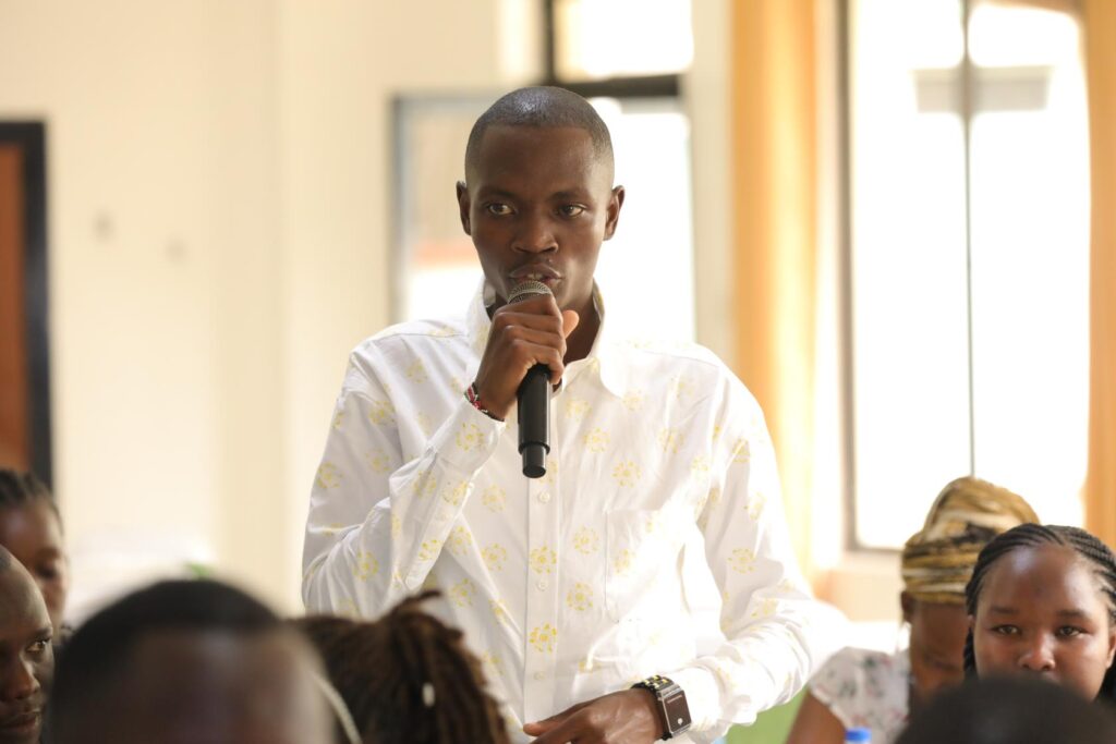 Prof. Solomon Shibairo engages the student leaders during the workshop.