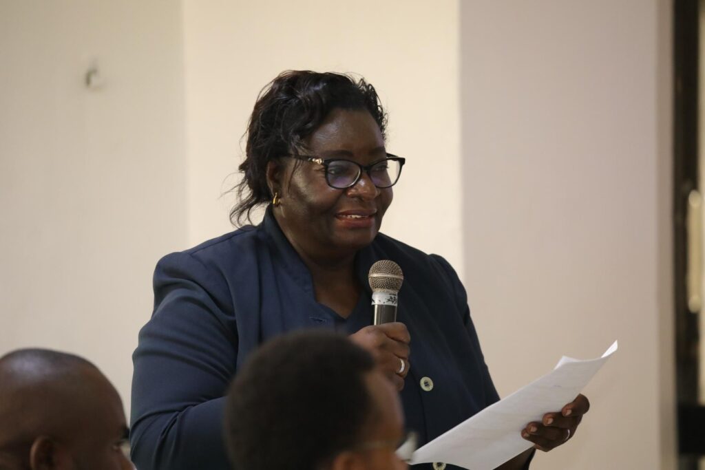 The Registrar Administration, Dr. Eglay Tsuma makes a presentation.