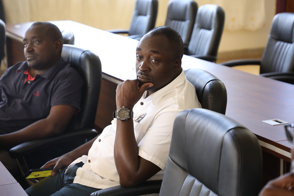The Chairperson of the Disability Mainstreaming Committee, Prof. Francis Orata (Left) keenly follows discussions during the training.