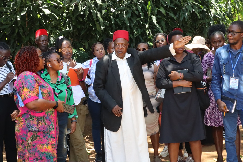 Notably, the fellows had a tour of the Nabongo Museum, where they interacted with vast artefacts from iron ore farm equipment and grinding stones to ceremonial drums and pottery. The fellows also had the opportunity to visit the royal mausoleum, the final resting place of His Royal Majesty King Nabongo Wanga and his successors, including Nabongo Mumia and Nabongo Shitawa. Here, the fellows learnt the strict protocols of royal burials. Interestingly, the elders revealed that only those who died natural deaths were interred within the mausoleum, while those who met ‘unusual’ ends were buried where they fell, and queens were traditionally laid to rest at their matrimonial homes.