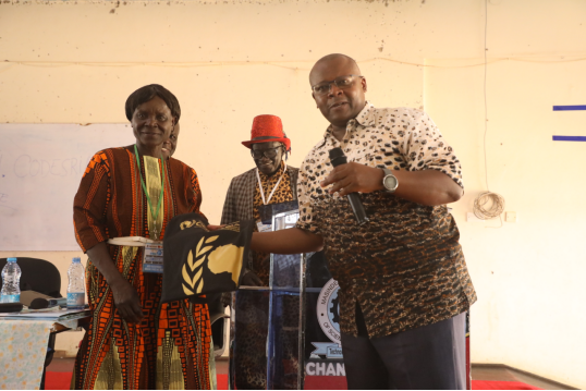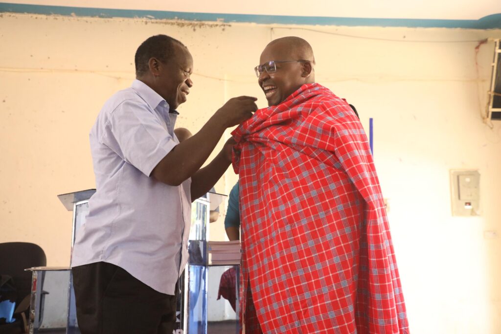 Indigenous Knowledge Holders, Ms. Mary Khakhayi and Mr. Johns Wambetsa receive a present from Dr. Murunga.