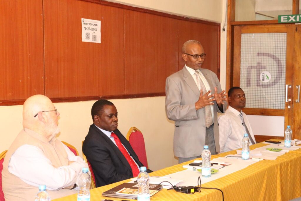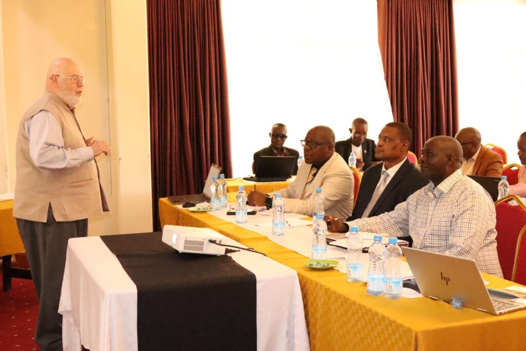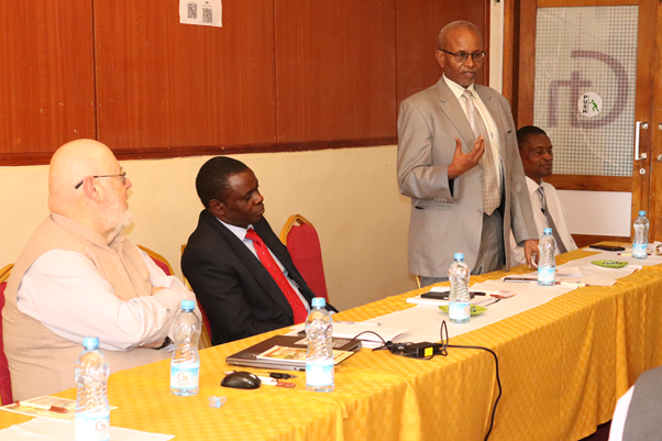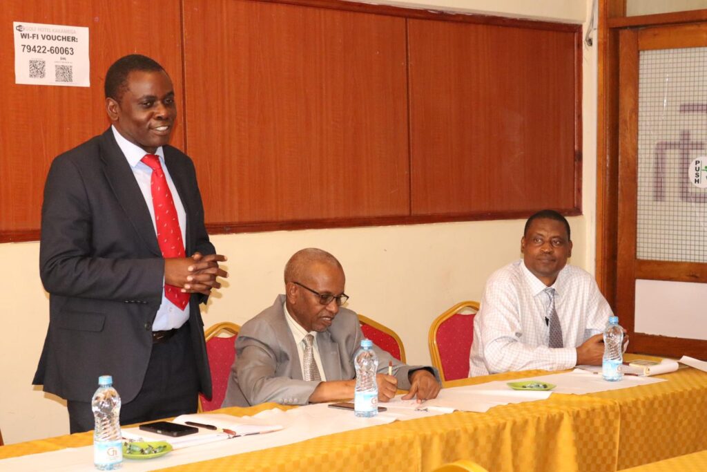 The Deputy Vice Chancellor (Academic and Student Affairs), Prof. Hussein Golicha, speaks at the KUC-MPTT stakeholders’ Workshop.